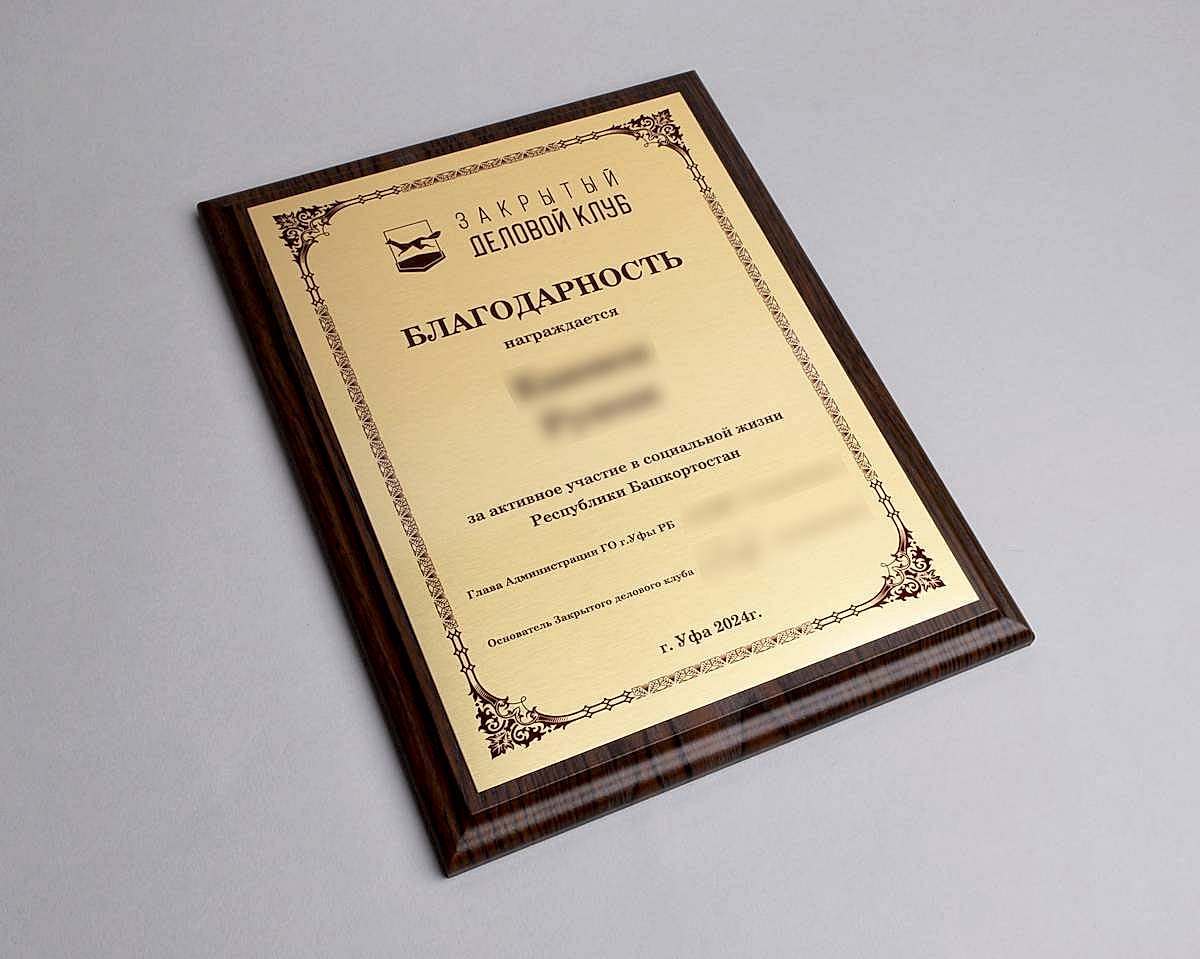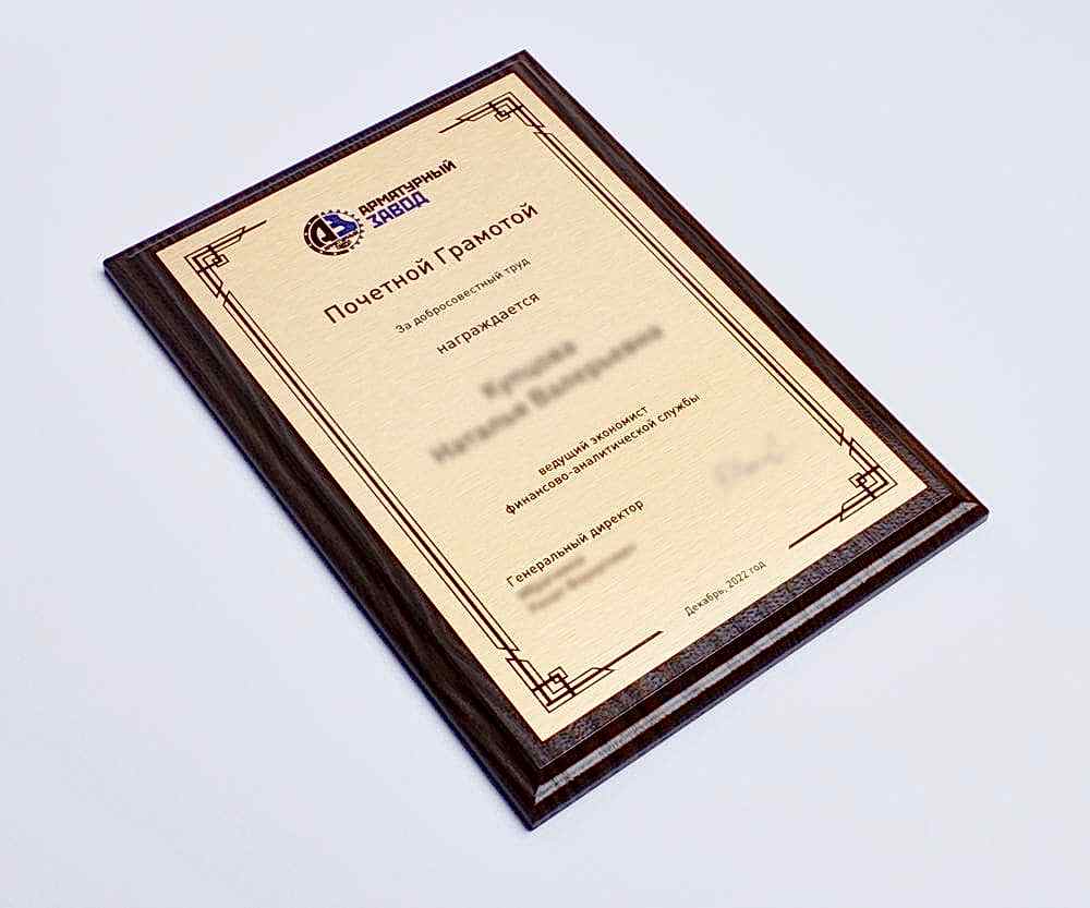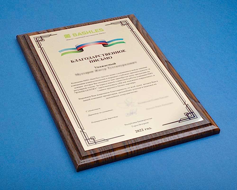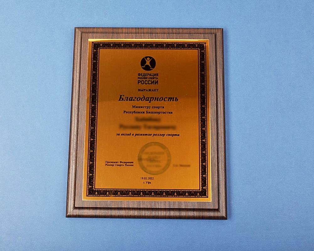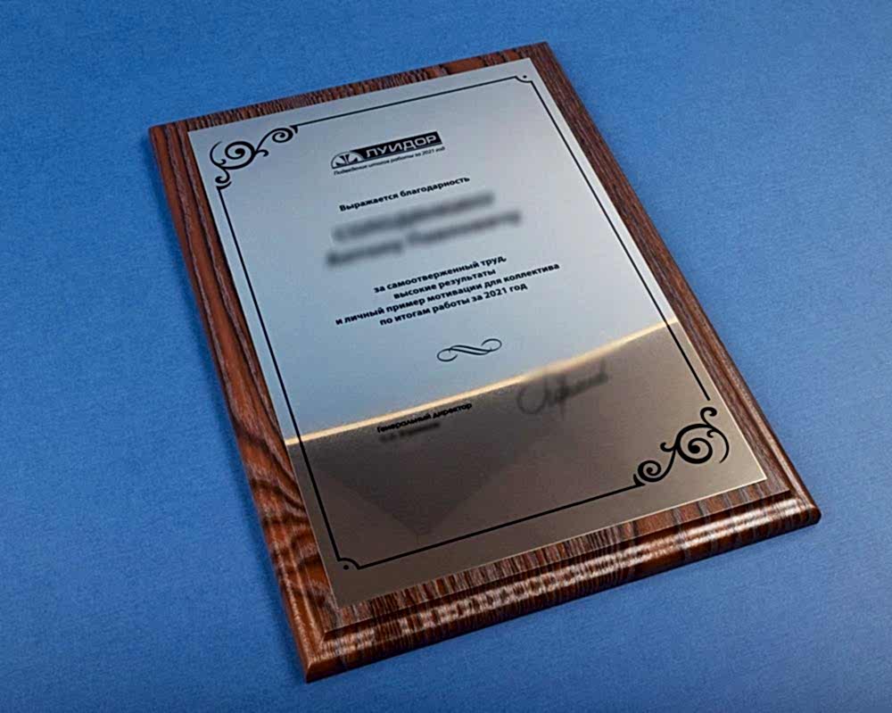 Подарочные плакетки в виде дипломов, сертификатов, благодарственных писем мы выполняем из различных материалов: дерево, искусственный камень, натуральная кожа и т. д. Наносим информацию такими способами, как: лазерная гравировка, УФ-печать, сублимация. Металлическую пластину Вы выбираете сами, также по Вашему желанию плакетки можно украсить дополнительными элементами из разных материалов. Срок разработки дизайна и изготовления подарочной палетки - от 1 дня, минимальный тираж - 1 шт.